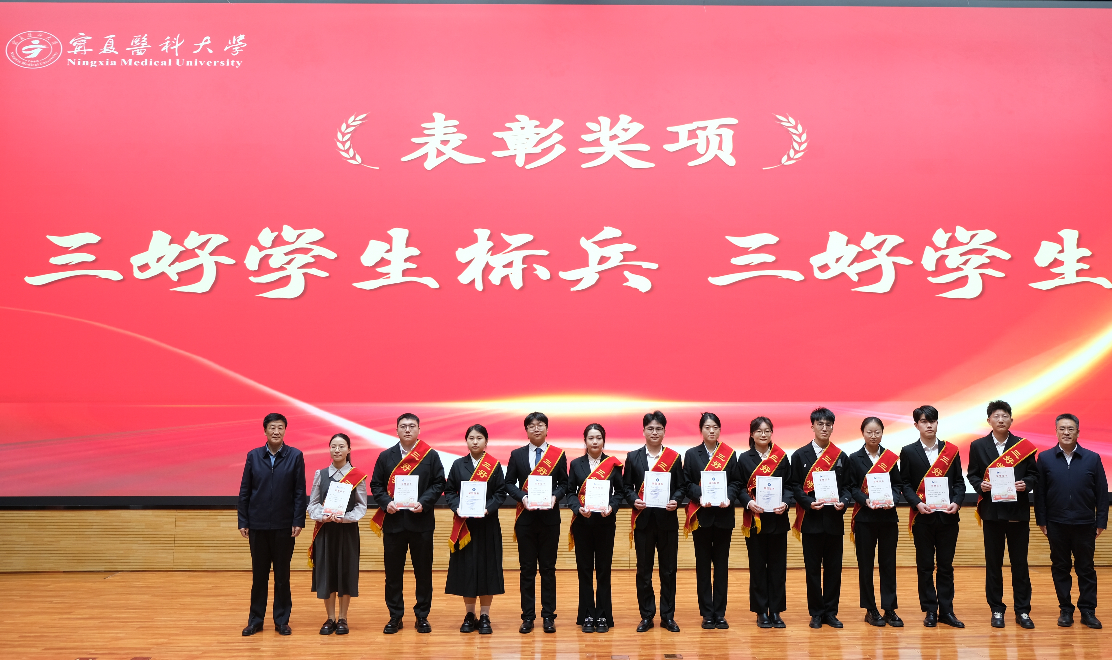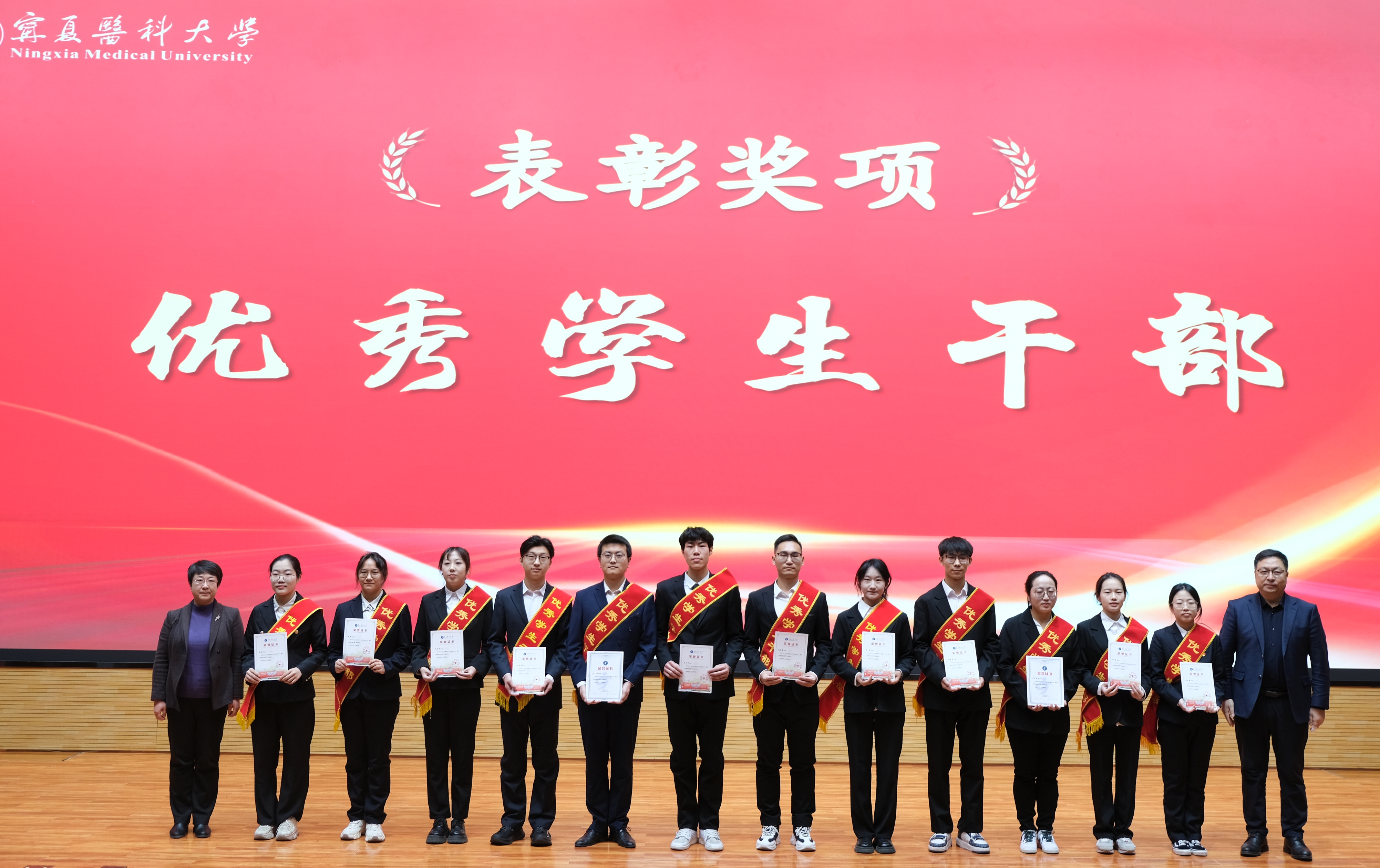 姜怡邓寄语全体受表彰学生,他讲到,2024年,全校上下一心,始终坚持以习近平新时代中国特色社会主义思想为指导,深入学习贯彻党的二十届三中全会和习近平总书记考察宁夏重要讲话精神,全面落实自治区党委十三届七次、八次、九次全会精神,并胜利召开了学校第三次党代会,一起按下了建设西部一流、国内知名、国际有影响、特色鲜明的应用研究型大学的“加速键”,为全力以赴推动学校高质量发展奋勇向前标明了航标。宁医学子通过勤奋学习、锐意进取,在创建民族团结进步示范班、学术论文发表、科创比赛、体育竞赛以及社会志愿服务等方面取得了优异成绩,全面展示了宁医学子的青春风采。