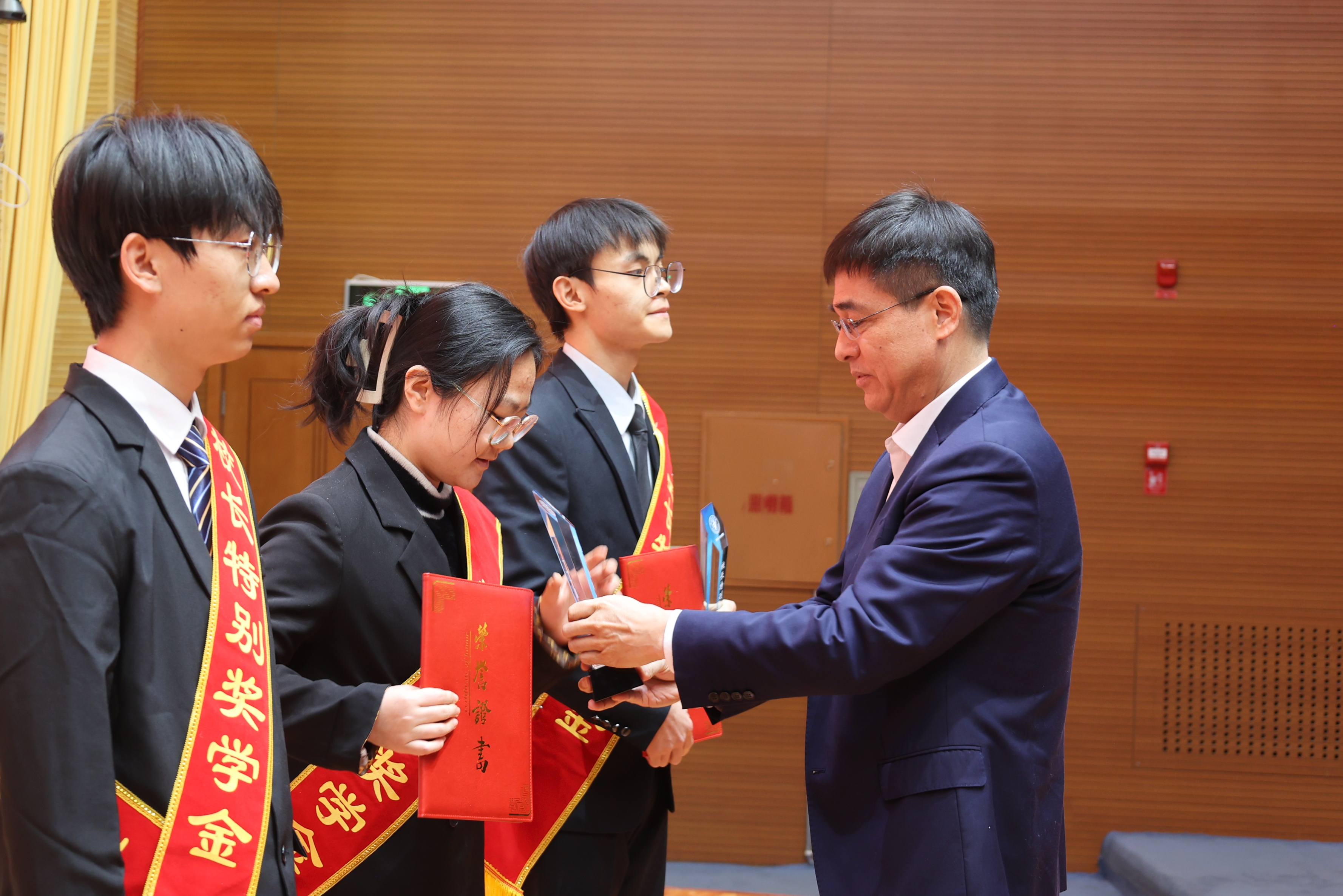 大会在庄严的国歌声中拉开帷幕,会议宣读了2023—2024学年获得各类奖学金、先进班集体、优秀个人的表彰决定和授予23个“民族团结进步示范班级”的通知。张治荣、姜怡邓和副校级领导分别为被授予“民族团结进步示范班”代表,先进班集体获奖代表,国家奖学金获奖代表、国家励志奖学金获奖代表,校长特别奖学金获奖代表,自治区来华留学生政府奖学金获奖代表,“三好学生标兵”、“三好学生”获奖代表和优秀学生干部获奖代表颁发奖牌、荣誉证书。
