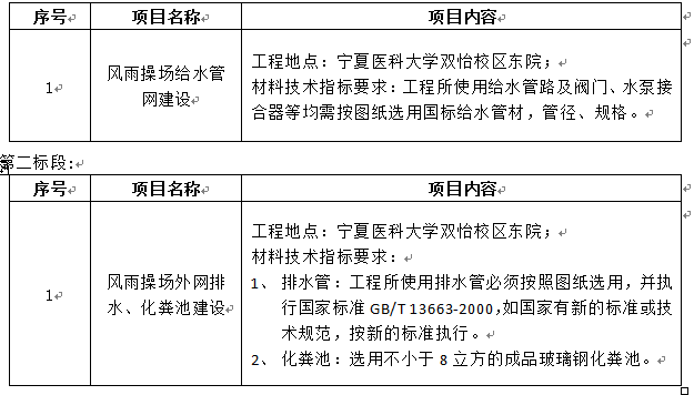 宁夏中天世纪招标有限公司受宁夏医科大学的委托,为双怡校区风雨操场给水管网工程以及相关服务进行代理采购业务。本项目采用公开招标,现邀请合格供应商就本项目所需采购的货物以及有关服务提交密封投标文件。具体事项如下: