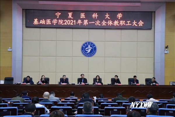 3月5日下午,基础医学院在尚行会议中心召开“2021年度第一次全体教职工大会”,学院领导班子及全体教职工共计162人参加了会议,会议由常务副院长胡建国同志主持。学校纪委书记谢波同志到会督导。