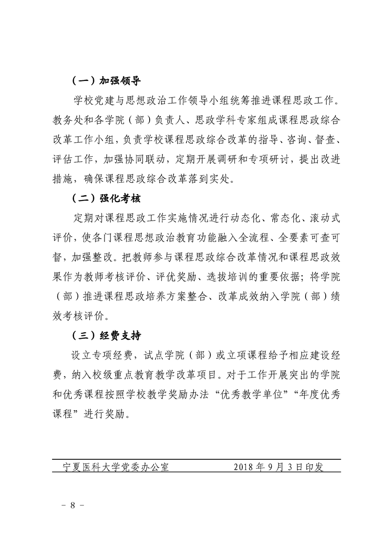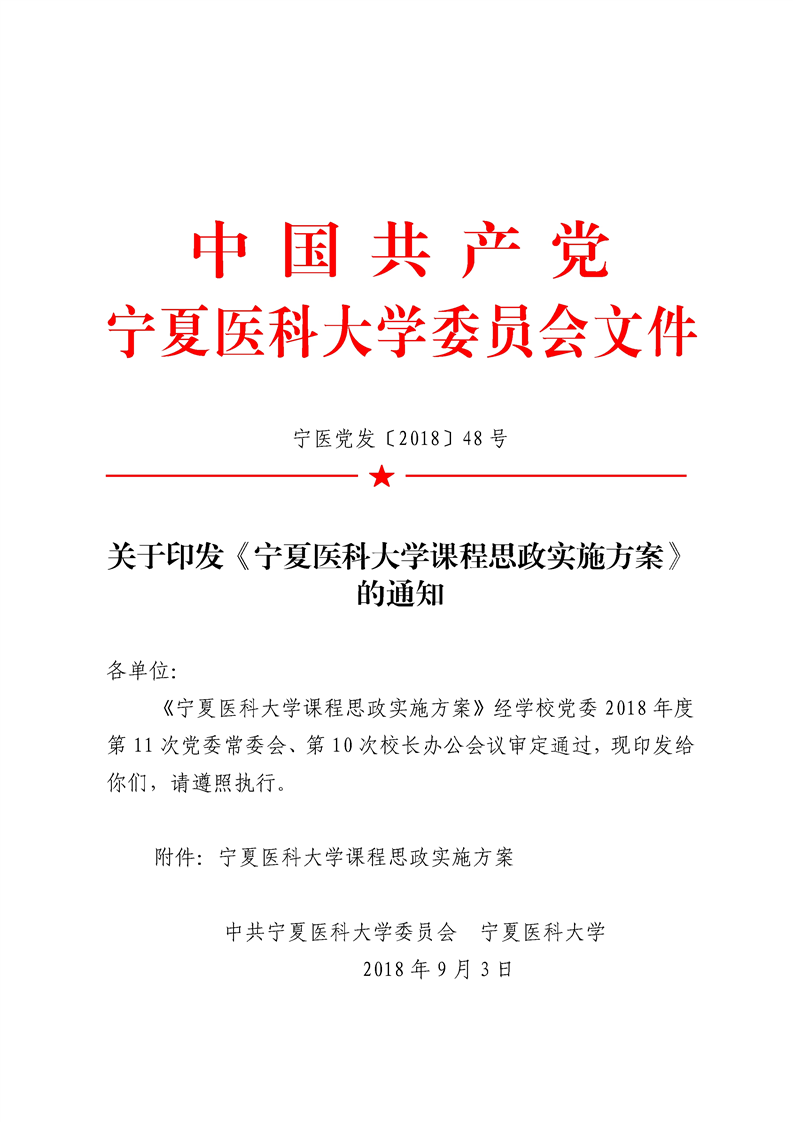 关于印发《宁夏医科大学课程思政实施方案》的通知