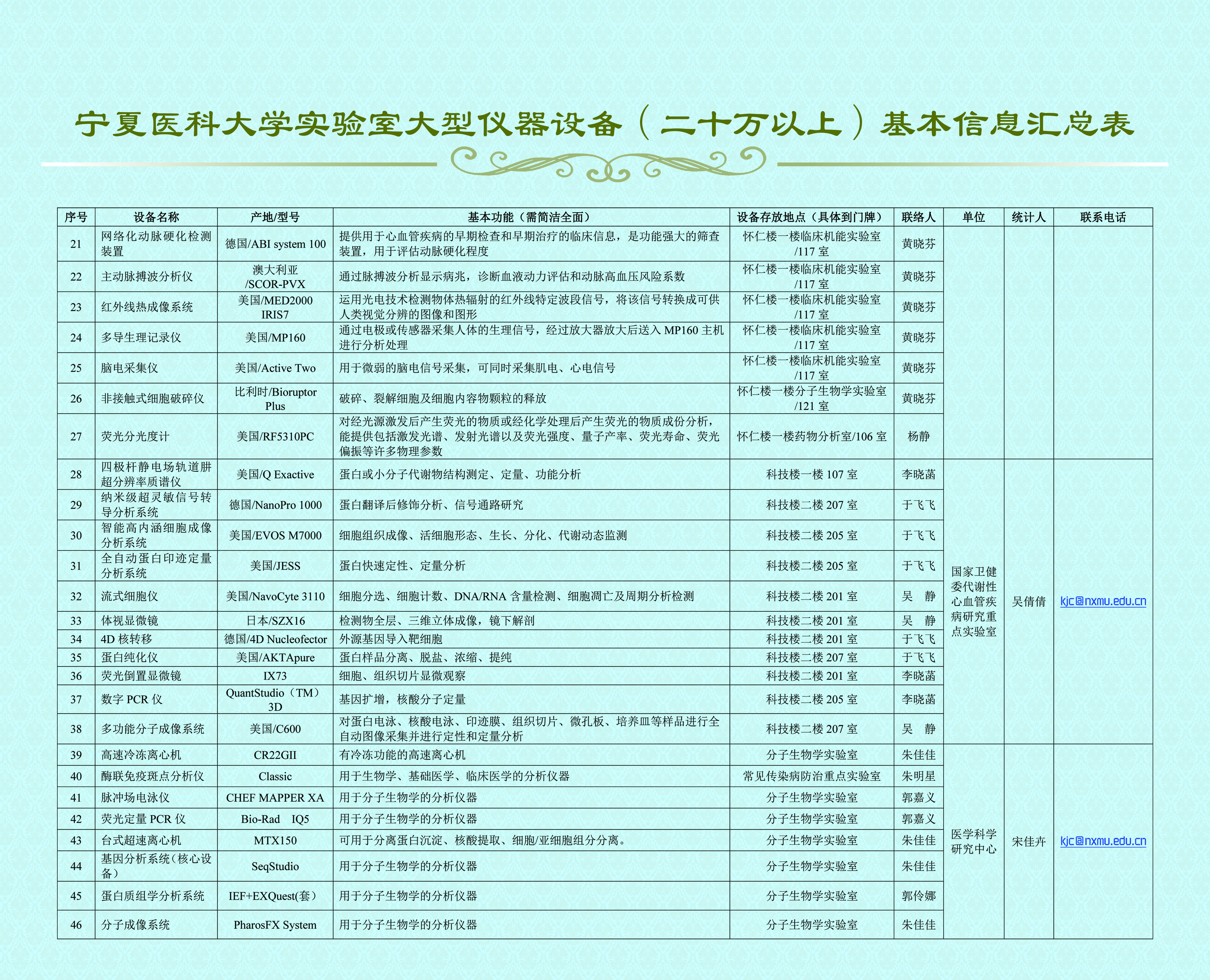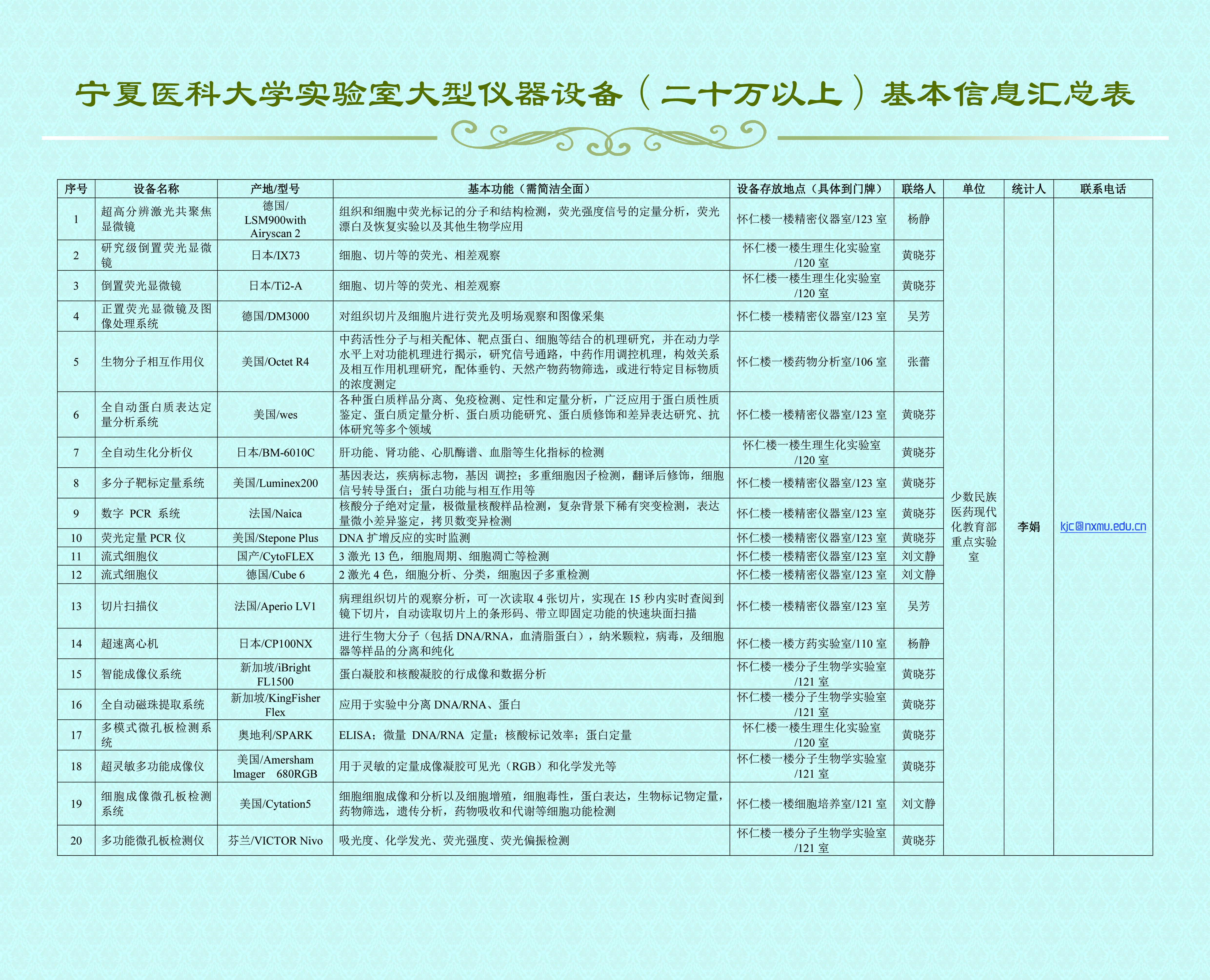 宁夏医科大学实验室大型仪器设备基本信息汇总表